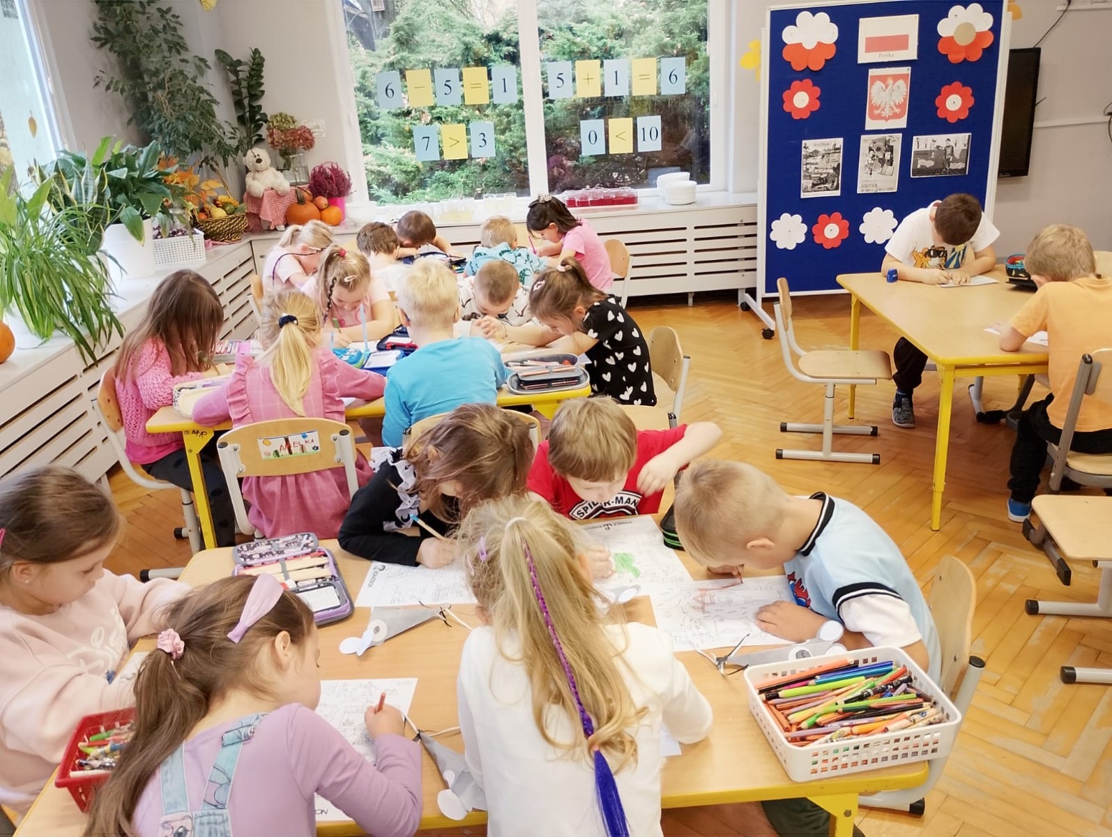 Podczas zajęć najmłodsi obejrzeli film edukacyjny, pokolorowali plakat oraz przygotowali piękne laurki dla Powstańców