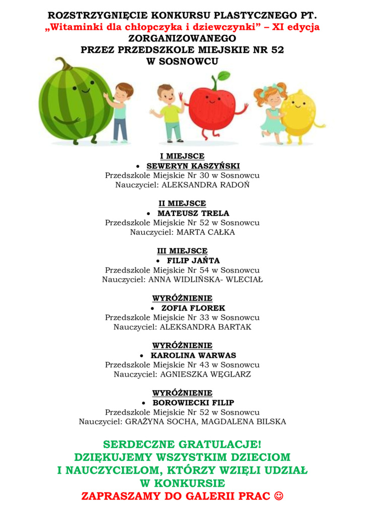 Rozstrzygnięcie konkursu pt. „Witaminki dla chłopczyka i dziewczynki- XI edycja”