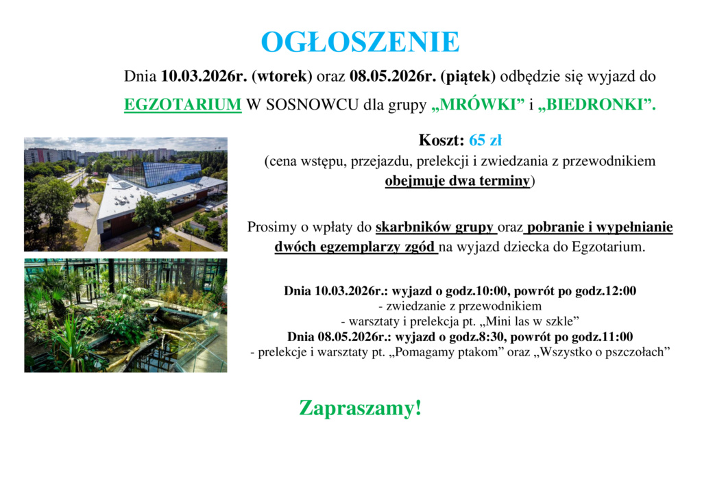 Ogłoszenie dla grup „Biedronki” i „Mrówki”