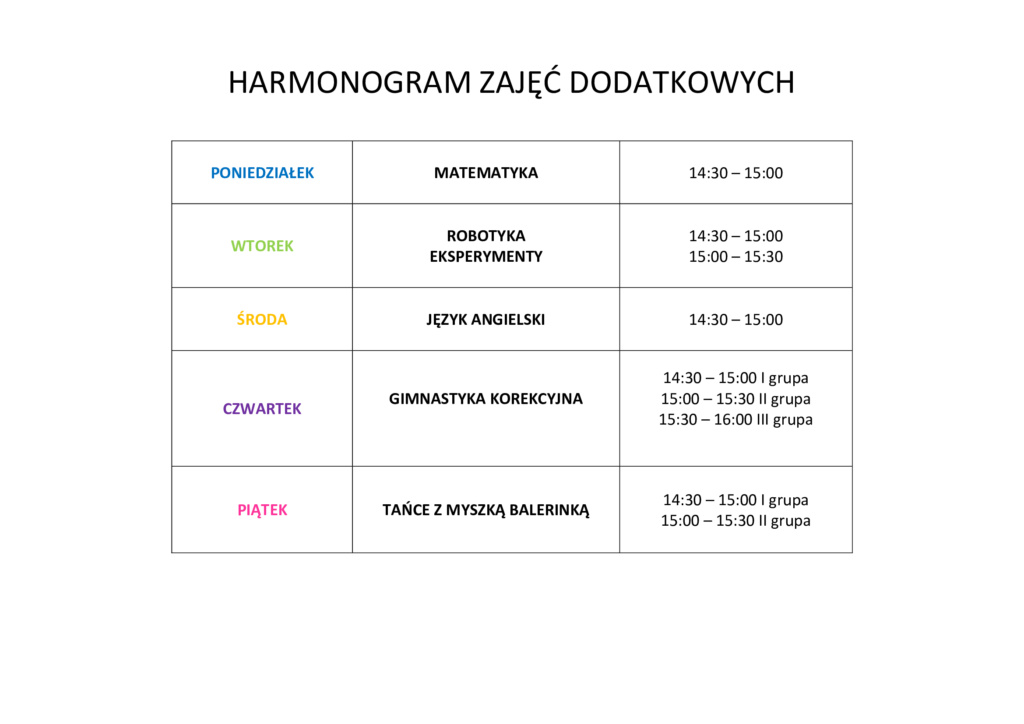 ZAJĘCIA DODATKOWE